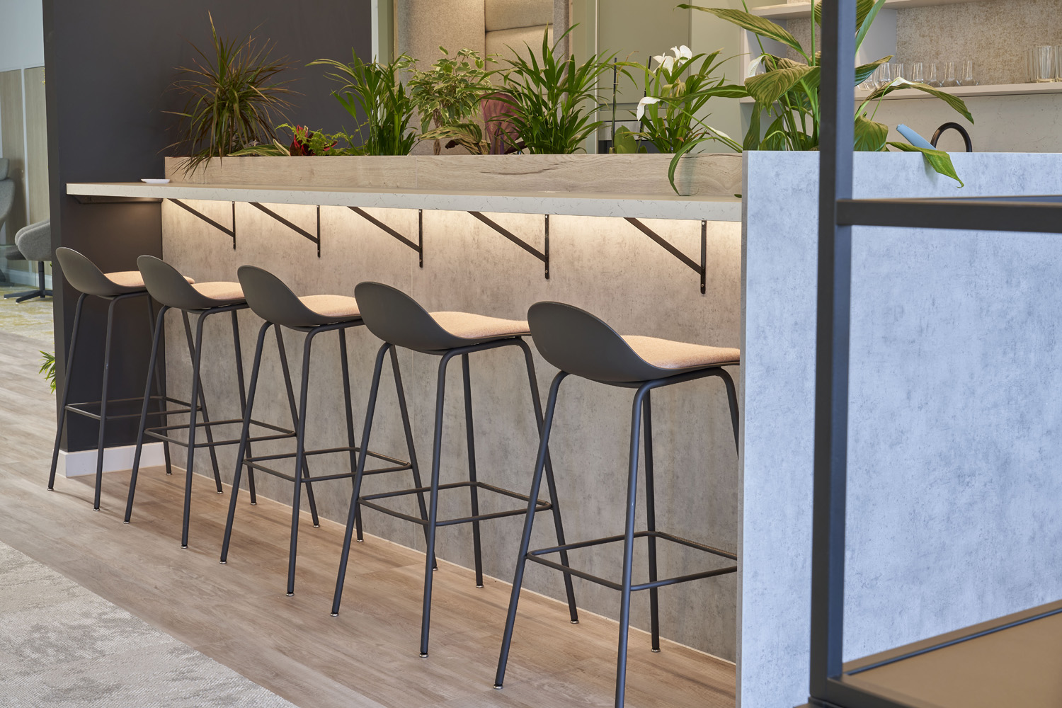 Naylors Gavin Black office showing breakout areas with barstool seating